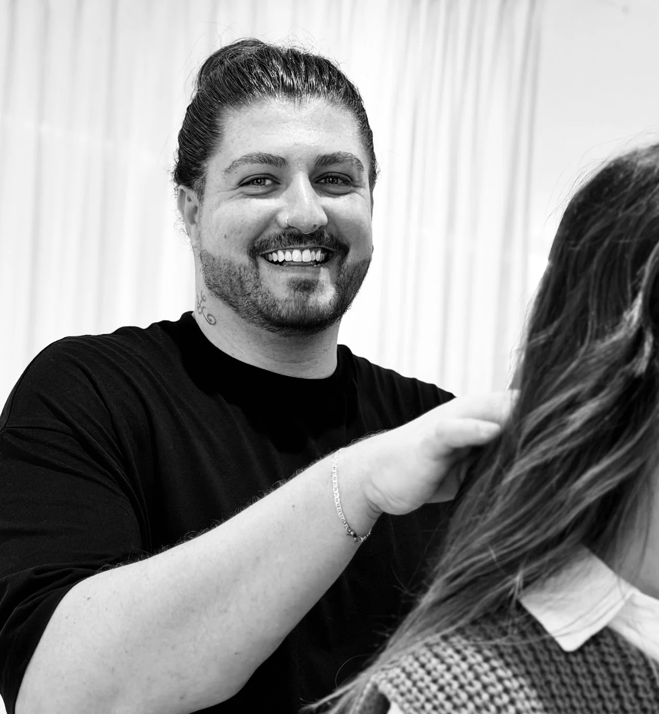 Passionné par la transformation et la mise en valeur, il s’est spécialisé dans la coloration, le balayage, la correction couleur et les métamorphoses sur mesure.
